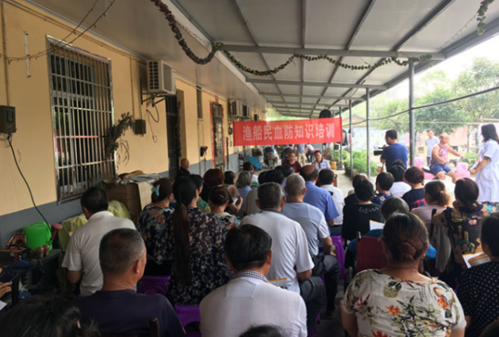 目前正值急性血吸虫病感染高发期,由于渔船民接触疫水频繁,极易感染血吸虫病,为保障渔船民的身体健康,6月22日,在大鲸港镇渔民社区的大力支持下,安乡县血防办组织该社区近80名渔船民开展了血防知识宣传活动。