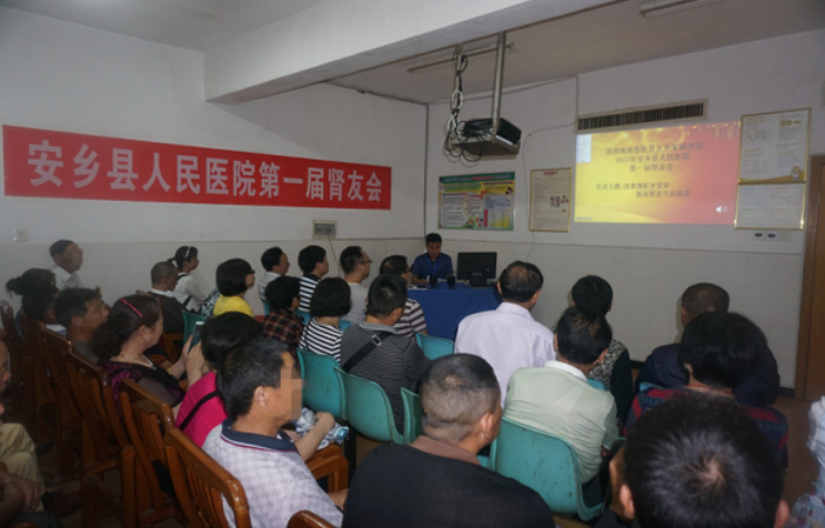 近日,安乡县人民医院肾内科及血液净化中心全体医护人员精心组织的《安乡县人民医院第一届肾友》在医技楼会议室隆重举行,来自各地的50余名肾友及家属参加了本届肾友会。该院院长丁建华、纪委书记陈德超、院长助理陈劲、护理部主任齐国平等出席了会议。