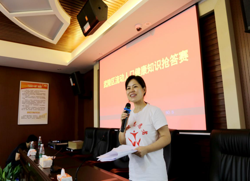 二、健康讲座推广普及科学知识。除了免费咨询与义诊服务外,本次活动选取了老百姓喜闻乐见的课题,特邀请了武陵区疾控中心唐志敏专家为流动人口代表进行“家庭常见慢性病的预防和控制”的健康教育讲座,现场座无虚席,掌声不断。