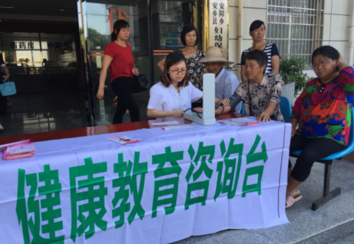健康检查。深柳镇卫计办将80名流入人口带到潺陵医院进行免费义诊和健康检查,安全乡卫计办组织乡卫生院医务人员前往居民小区为群众开展免费身体健康检查,黄山头镇、安障乡、安丰乡、三岔河镇、官垱镇、安康乡组织老年人、育龄群众、儿童统一到卫生院开展义诊、咨询、健康讲座等活动。7月12日,安乡县妇幼保健计划生育服务中心“科技活动周”及扶贫义诊活动在三岔河镇同春村进行。县妇幼保健计划生育服务中心相关领导带领医院骨干,携带相关医疗设备,为126名村民进行义诊、免费孕前优生检查和产前筛查,发放宣传资料800余份,并为当地村民免费发放了价值近2000元的医疗药品。针对当前的两孩政策,专家们重点就科学备孕两孩、孕前及孕期保健、科学喂养婴幼儿为村民们进行了健康科普教育。县妇幼医疗队准备用三周的时间对该县四个乡镇的八个扶贫村开展送医送药义诊活动。