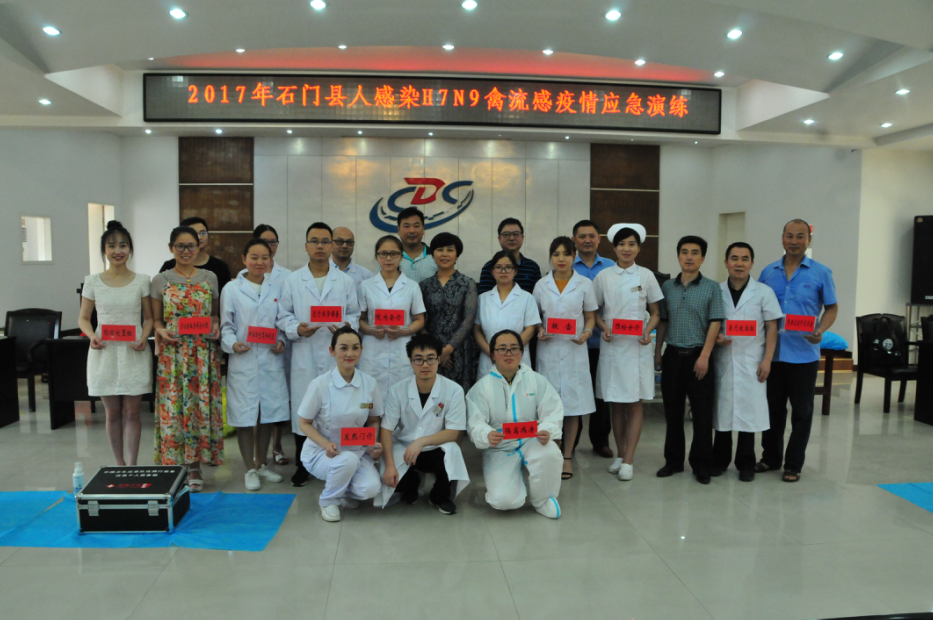 为加强人感染H7N9禽流感防治工作,提升石门县突发公共卫生事件应急处置水平,7月14日,由石门县卫生计生局组织,县人民医院、县疾控中心参演的人感染H7N9禽流感防控应急演练在石门县疾控中心六楼会议室举行,县直、各乡镇医疗机构负责人及相关医护人员观摩了演练。