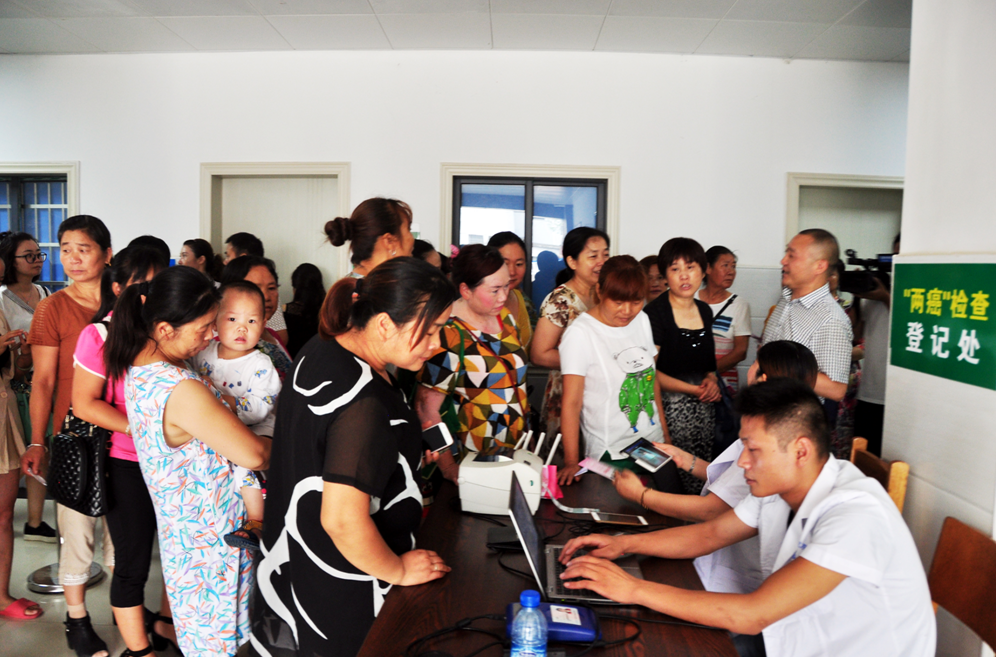 为进一步了解农村适龄妇女“两癌”免费检查和免费产前筛查两项重点民生实事项目工作进度与质量,8月1日,市妇联、市卫计委、市妇幼保健院联合组成的督查组对澧县妇幼保健院承办的“两癌”免费检查和免费产前筛查两项重点民生实事项目工作进行了督查,在澧南镇卫生院“两癌”免费检查现场,700多名适龄妇女正在踊跃排队参加检查。