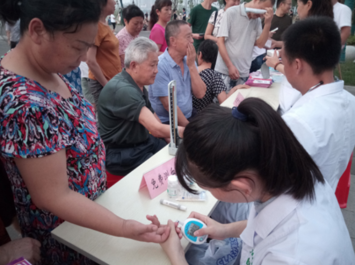 医护人员为群众免费量血压、测血糖
