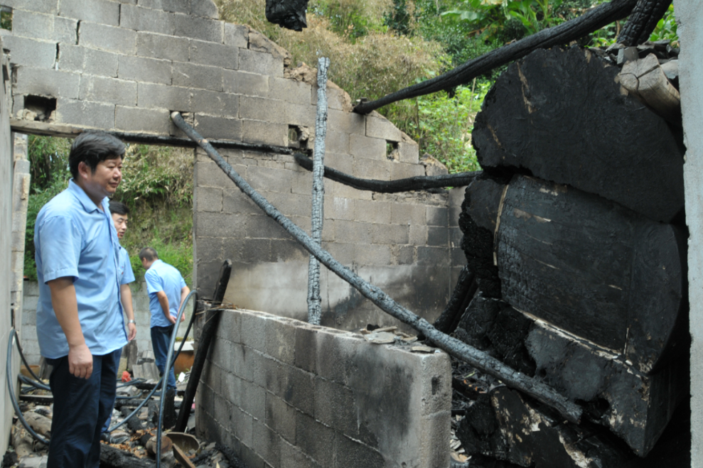 第二天,暑气依然逼人,山体仍有滑坡,村里道路还未修复,龚奎主任率10余名扶贫队员赶早来到了子良镇陈家湾村,和村支两委一道查灾情、慰灾民。骄阳似火,炎炎烈日下村里满目疮痍,看着被冲垮的道路,被冲毁的房屋,被淹没的良田,龚主任和队员们无不动容。全村供水中断,数百亩良田被淹,道路中断导致13个组的村民出行全靠步行,贫困户向庆卉家的房屋一楼全部被淤泥覆盖,淤泥深近一米,两老被困家中,向奇名家因大风造成电线短路发生火灾,致使两间偏房完全烧毁,两老的棺材被烧为灰烬,所有这一切无不牵动着队员们的心。他们关切地询问着村民的受灾程度、现实困难以及灾后自救打算,鼓励他们树立信心,不等不靠,尽快恢复生产生活。去天星组的道路全部被冲毁,山上还时有泥石滚落,石门县疾控中心主任龚奎带领3名队员顶着烈日徒步近一个小时来到受灾村民家中送去一声慰问和些许心意,村民们深受感动,倍受鼓舞。