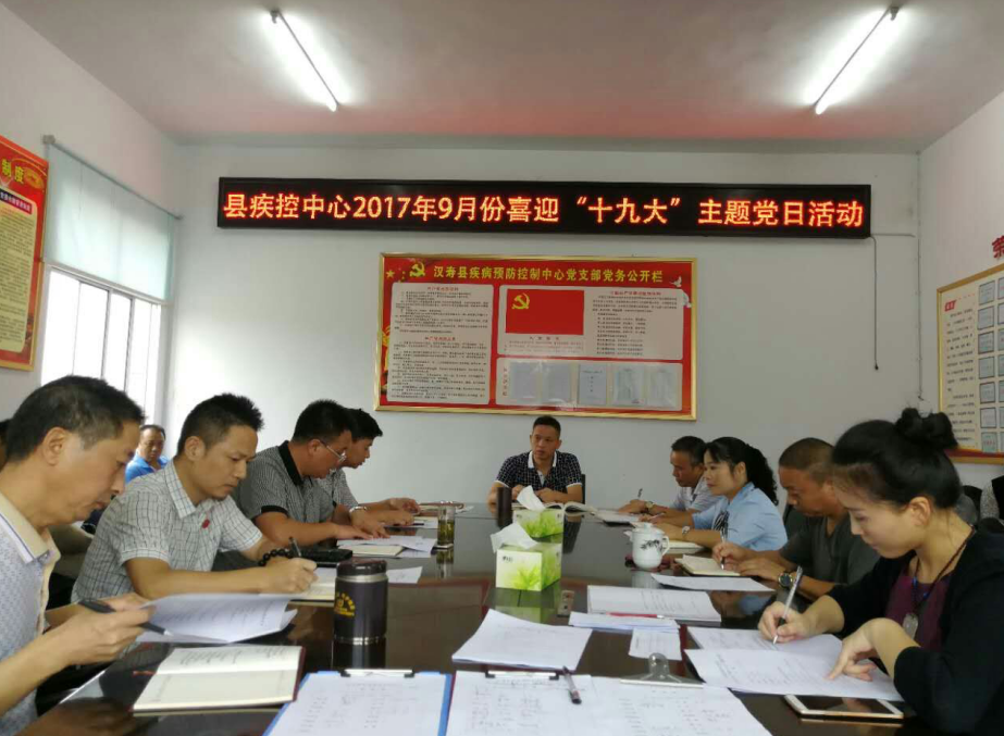 为迎接党的十九大胜利召开,推动“两学一做”学习教育深入开展,9月27日,汉寿县疾控中心开展了以“喜迎十九大”主题党日活动。