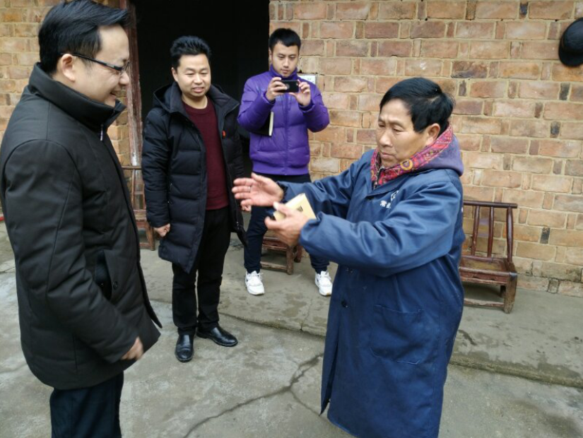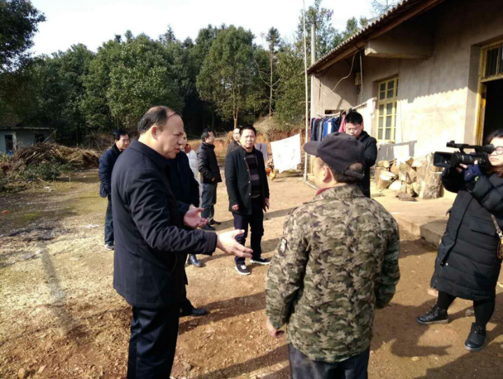 鼎城区人大主任杨君(左一)慰问尧天坪镇计生特困对象娄大文