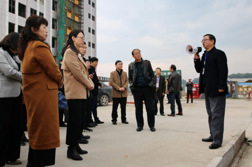 吉首市考察组一行来到石门县人民医院北扩工程基地进行实地考察,该院负责人向考察组一行介绍了该项目建设情况及建成后使用情况。