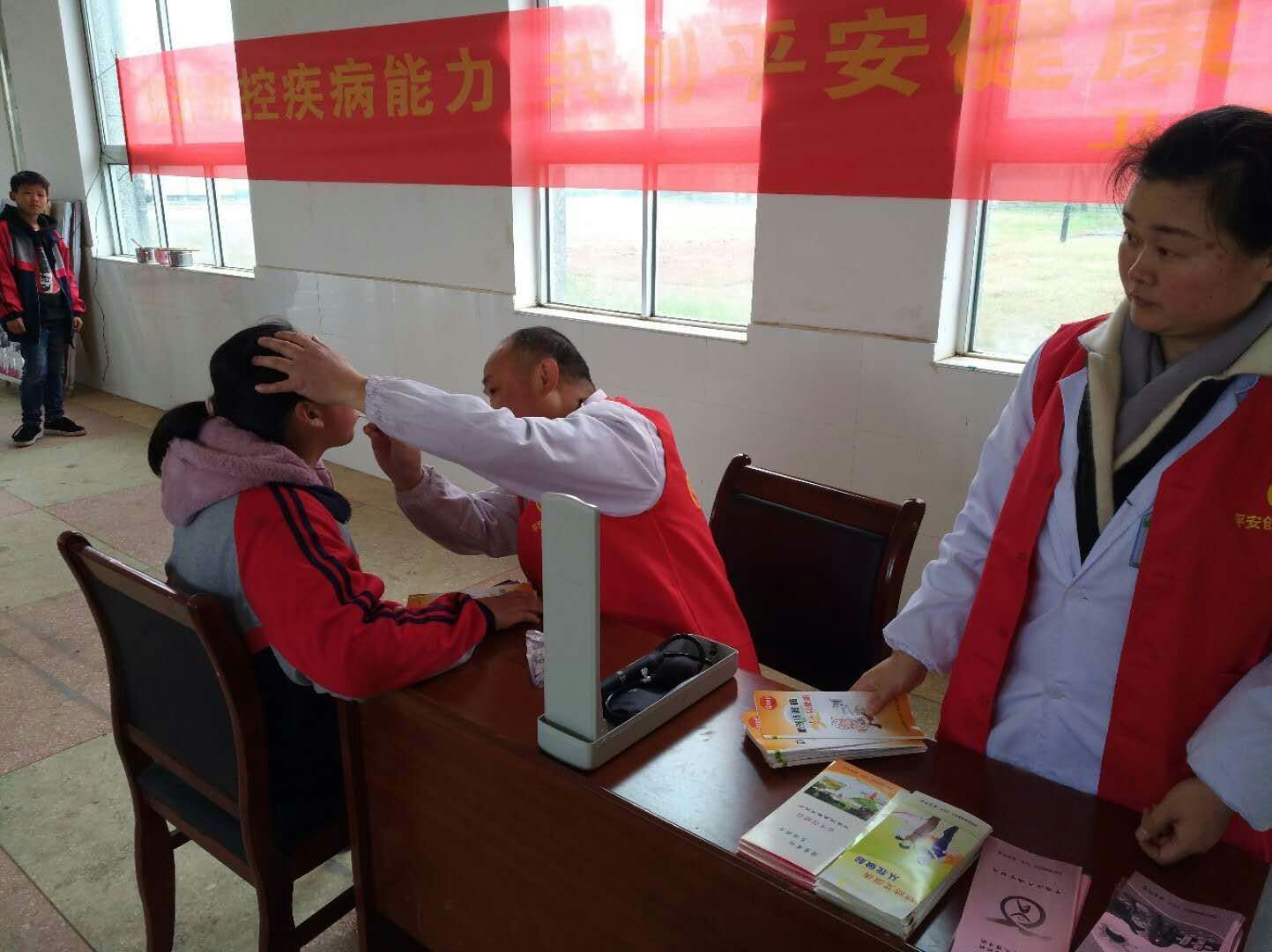 活动中,平安创建志愿者向过往群众发放宣传折页,宣讲了健康素养、预防宫颈癌、乳腺癌、优生优育、出生缺陷预防、儿童保健、慢性病防治等知识。医务人员一边为参加活动的群众免费体检身体,一边为群众解答关于常见病、多发病的预防诊治及愈后疑难问题,为有需要的患者指导下一步的诊疗方向,同时还积极向他们宣传健康扶贫政策,鼓励患者早诊疗、早脱贫。