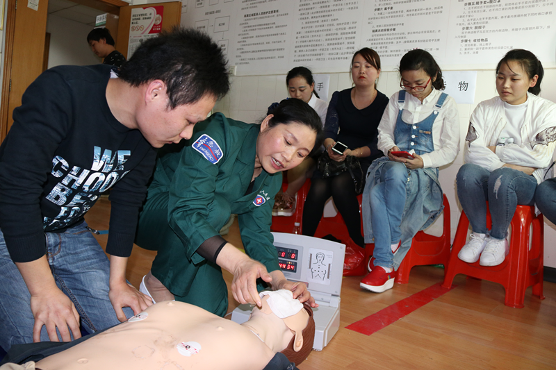 培训采取集中学习与全员考核、理论授课与实践操作同步进行。通过PPT强调了心肺复苏在抢救心脏骤停病人过程中的重要性,明确心肺复苏的各种注意事项和操作细节,之后进行了心肺复苏标准操作示范,使培训课程直观、生动、形象。学员们全神贯注,气氛活跃,学习热情高涨。