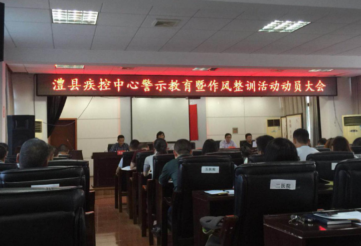 4月11日下午,澧县疾控中心组织全体职工召开了警示教育暨作风整训动员大会。会议由澧县政协副主席、县疾控中心主任邓连琼主持。会议提出,将集中一个月的时间开展专题警示谈话、警示教育课、法制教育课、政治理论学习、制度职责落实情况拉网式清理、“工作纪律规范月”等十项主题的作风整训活动,促进全体干部职工不断增强学习政治理论的主动性、自觉性,进一步坚定理想信念,树立“四个意识”;促进全体干部职工牢固树立法纪意识,廉洁自律,提升职业道德修养;促使全体干部职工进一步转变工作作风,振奋精神、爱岗敬业、努力建设一支信念坚定、作风优良、无私奉献,清正廉洁的高素质疾控队伍。