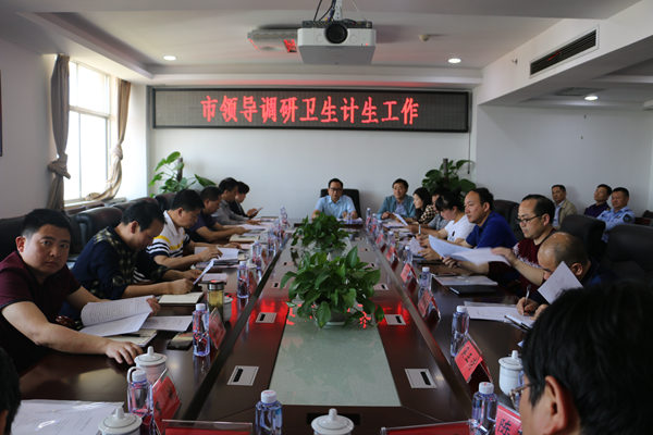 4月19日下午,津市市委常委、副市长熊斌一行到津市市卫生和计划生育局调研卫生计生工作。津市市政府副市长杜强,以及市委办、市政府办、市财政局、市发改局、市建设局、市国土局、市人社局、市编办、卫计局班子成员、卫计系统二级机构等单位负责人共计37人参加调研。