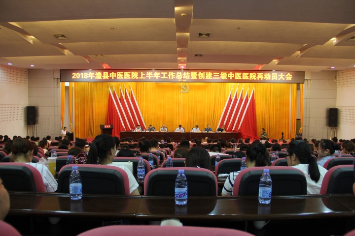 7月18日晚,澧县中医医院2018年上半年工作总结暨创建三级中医医院再动员大会在澧县行政中心6号楼隆重召开,总结上半年工作情况,安排部署下半年工作重点。大会由党委副书记、副院长戴清华主持,该院领导班子、职工400余名参加了本次大会。