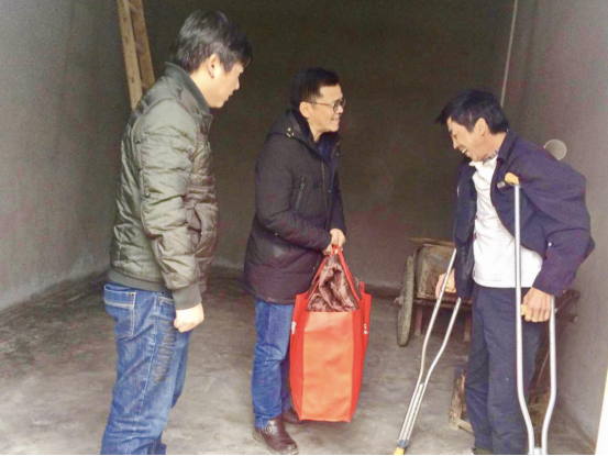 张中合一行不顾雨雪冰冻恶劣天气,走进建档立卡户和部分非贫困户家里,嘘寒问暖,察看他们过年的物资准备得怎么样?看他们的粮食够不够吃?看他们御寒的衣服够不够厚实?还有哪些突出困难?为他们送去慰问物资和新春祝福,初步制定2019年生产发展规划。