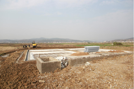 施工中的集中式污水处理系统