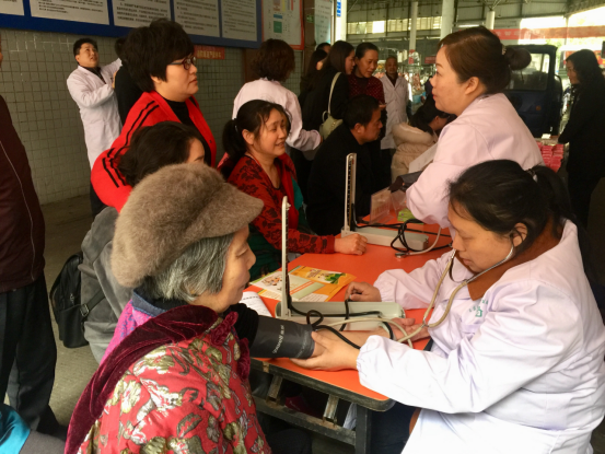 志愿者为前来体检的群众逐个认真细致的检查身体,测量血压,并耐心询问他们的日常生活习惯以及身体状况,给他们详细讲解卫生保健、安全饮食、合理用药、流行性疾病防治、慢性疾病预防等相关知识。对体检中发现有异常的人建议定期复查,并对其意外伤害预防、自救和老年人防跌倒措施等方面进行了指导。