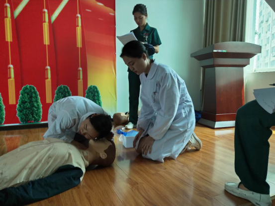 考核方式抛弃传统的机械氏操作,采用临床实践灵活机动运用专业知识。考核内容为模拟不同的急救场景下,护理人员如何采用自己的专业知识和技能,积极有效的进行护理干预的应急能力,如,双人徒手心肺复苏及呼吸气囊的使用等。整场考核气氛热烈且紧张,考生们娴熟准确的操作赢得了考官们的点赞。