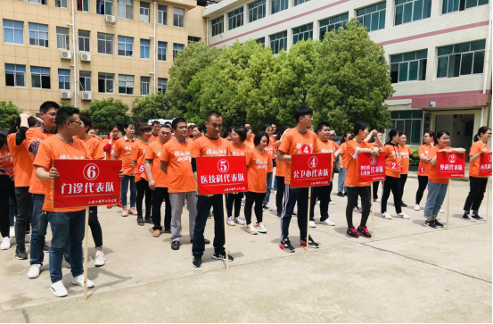 4月30日,澧县小渡口镇中心卫生院迎“五一、五四、五一二”户外拓展趣味活动在院内广场拉开帷幕,医院全体职工、裁判员、参赛队员及围观群众近百余人欢聚赛场。