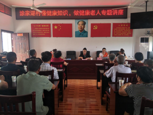 为贯彻落实全国卫生与健康大会的精神,宣传普及老年健康科学知识和老年健康相关政策,增强老年人健康意识,提高老年人的健康素养和健康水平,营造有利于老年人健康生活的社会环境。于6月11日,西洞庭管理区卫生健康局在祝丰镇涂家湖村首次开展了“懂健康知识 做健康老人”主题宣传周活动。