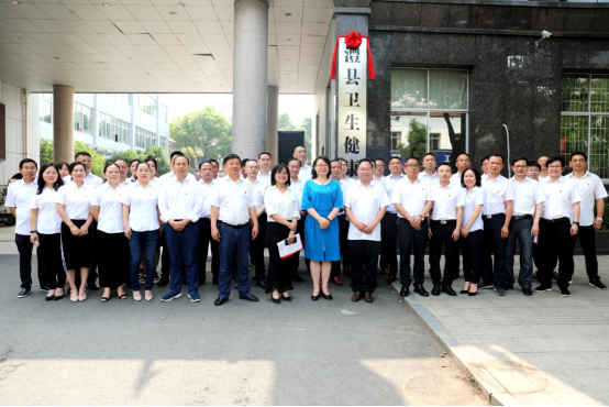 澧县县委宣传部部长李阳和县卫生健康局党组书记谭斌为澧县卫生健康局共同揭牌