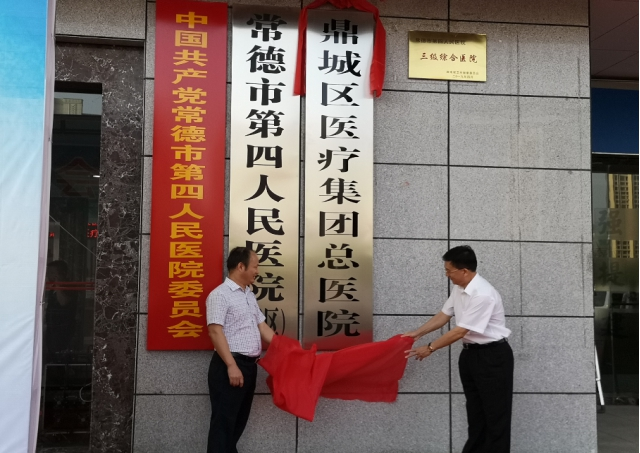 9月27日,鼎城区在常德市第四人民医院南区召开鼎城区医疗集团成立大会暨医疗集团总医院揭牌仪式。区委副书记、区人民政府区长朱金平同志出席大会,并与区卫健局局长林新忠同志一起为区医疗集团总医院揭牌。