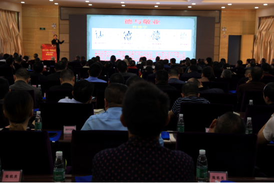 此次道德讲堂以“甘于奉献,传递大爱”为主题,分为作反省、唱歌曲、学模范、诵经典、发善心、送吉祥六个环节进行。