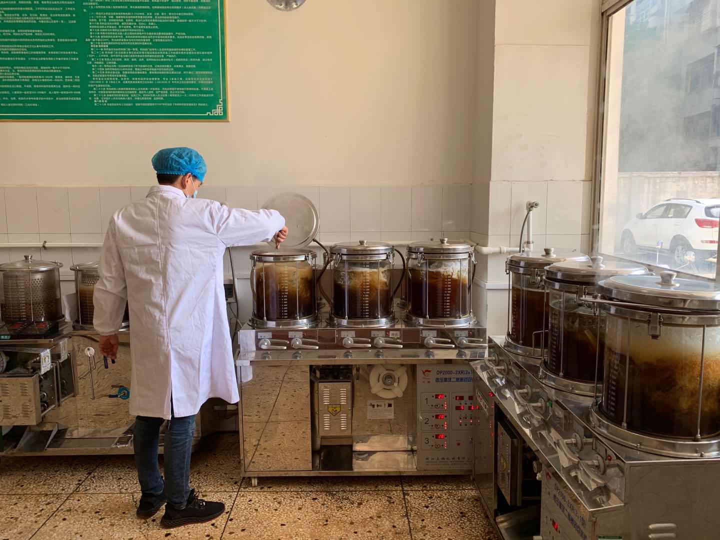 澧县中医医院药剂人员立即予以抓药、煎药、打包等一系列工序,在短时间内高效地完成了药物的熬制。并组织医务人员根据每组方的适宜人群,按照每人每日早晚各服一包,连续3天为一疗程,包装成袋分发给他们。仅今天就已经派发一号方100人份,二号方250人份,共计2100包。