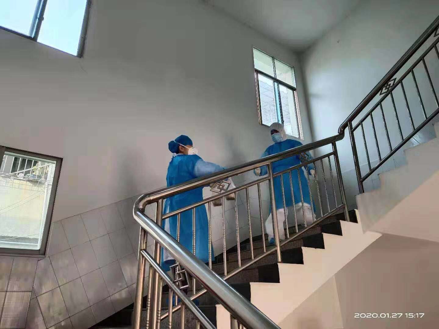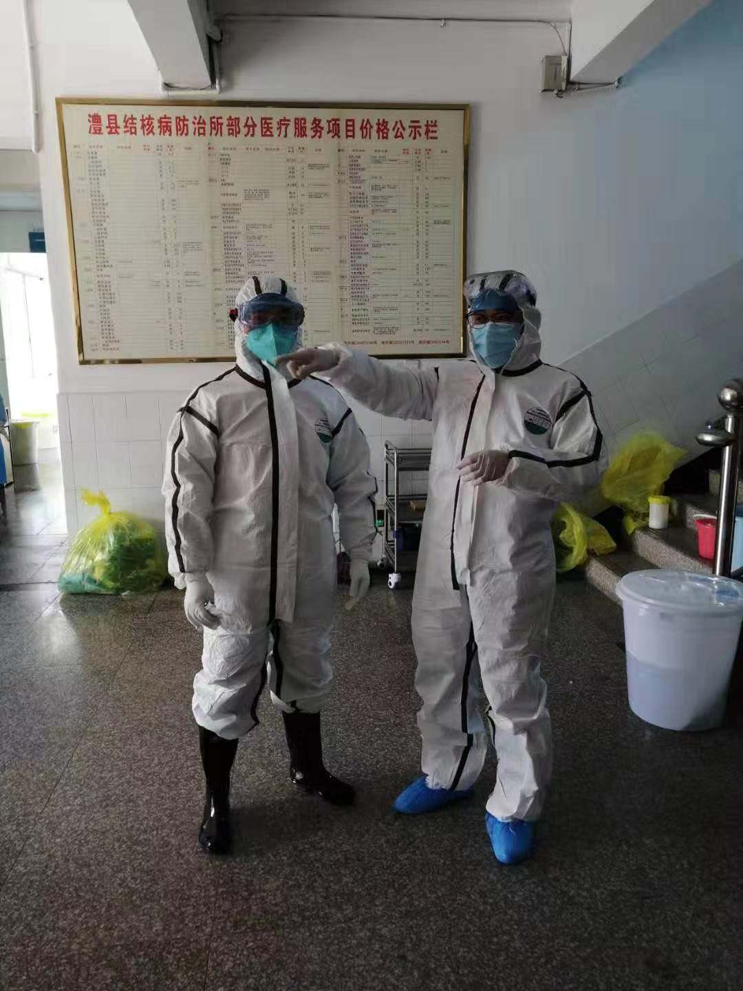 住院部主任龙兵,家中有嗷嗷待哺的儿子,妻子是B超室医生,他把儿子嘱托给父亲,一句话不说。除夕夜,他一人接诊了6名留观病人,穿着厚厚的防护服,一次次的穿梭在病房里。为节约珍贵的防护服,他曾十几个小时未曾脱下防护服,未喝一滴水,未离开过病房一步。他还主动与刘和东副所长承担了病区的清洁消毒工作,虽是冬天,但每次一场清洁消毒做完,全身都被汗水湿透。