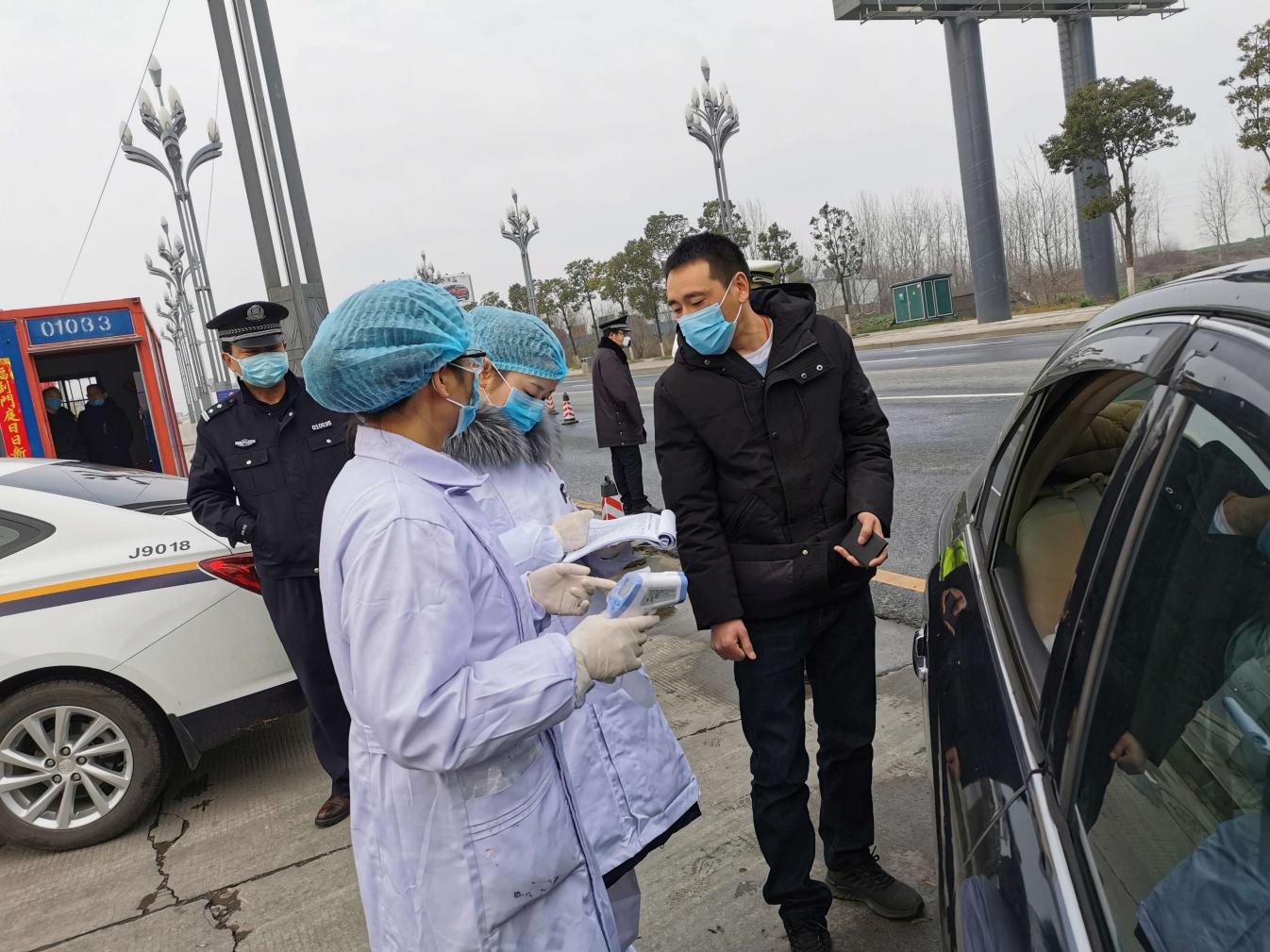 在检测点为来往车辆内人员测量体温
