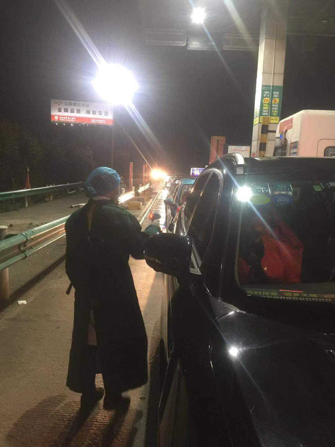 “老乡,新年好,请配合一下,接受体温检测”。如果你这几日经过G55高速澧县站出入口,你会看到这么一组白衣卫士在春节假期间每人穿着一身沉闷憋气不防寒的防护服,站在路口,每天迎着冬日的朝阳,挽着落幕的夕阳,披着寒冷的星夜,不惜把自己冻僵,拿着体温测试仪站在G55高速澧县站出入口,不厌其烦,严防死守,无一遗漏地对着一辆又一辆车里的人员进行体温监测、排查、宣传和劝导工作。远远望去,他们忙碌的工作背影,逐渐在我们眼中勾画出一幅幅美丽的画卷来,这一幅幅让人看了为之动容的澧州城外画卷,不由得让人升起一片敬畏之情!
