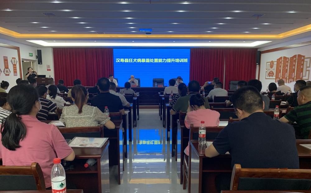 为进一步促进我县狂犬病防治队伍建设,提升我县狂犬病暴露后规范化处置能力,降低狂犬病传播和流行风险。汉寿县卫生健康局于2022年7月21日在县疾控中心举办了全县狂犬病暴露处置能力提升培训班。县直医疗机构、各乡镇(中心)卫生院及社区卫生服务中心狂犬病暴露处置门诊负责人与业务骨干共计100余人参加培训。