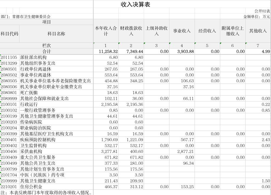 二、收入决算表