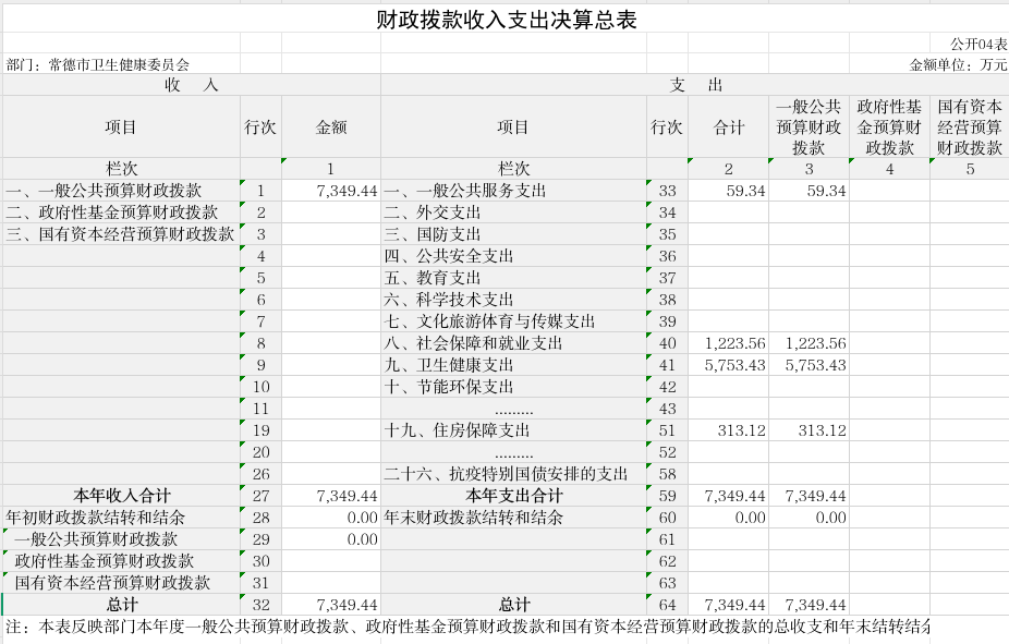 2024年中央及省拨付我委及所属二级机构632.21万元,市财政年初结转和结余非税追加、医卫特派员等项目资金164.13万元,常德市劳动卫生职业病防治所追加职业病防治专用设备质保金2.42万元,常德市皮肤病性病防治所追加药品成本返还收入150.27万元,合计949.03万元。2024年度实际支出947.96万元,年末结转和结余1.07万元。