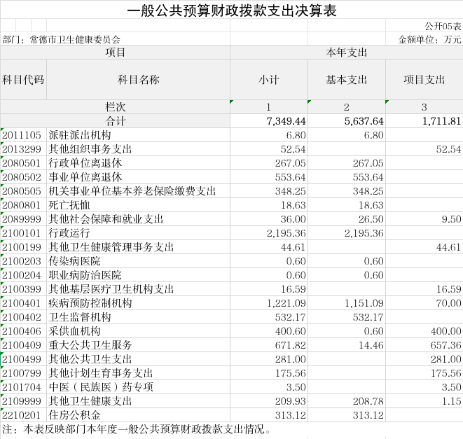 常德市卫生健康委员会本级 | 爱卫专项工作经费 | 100.00 |