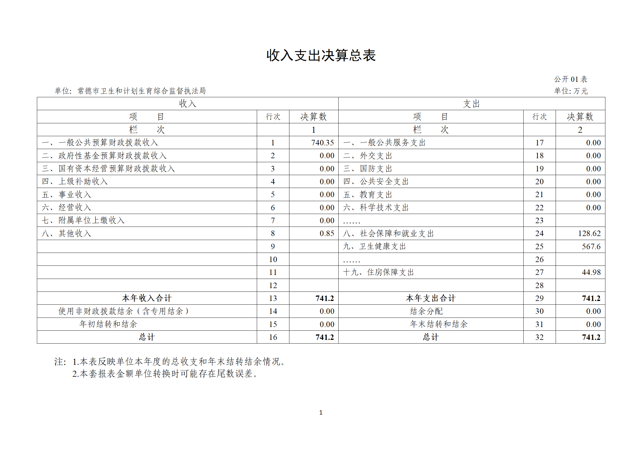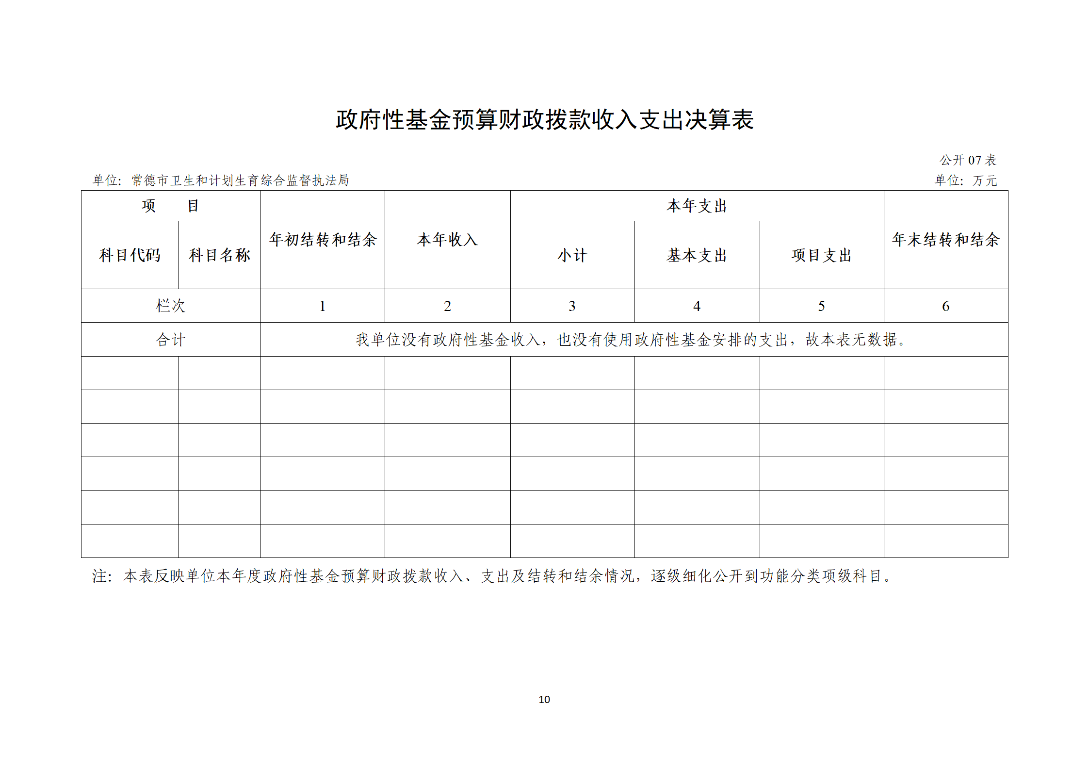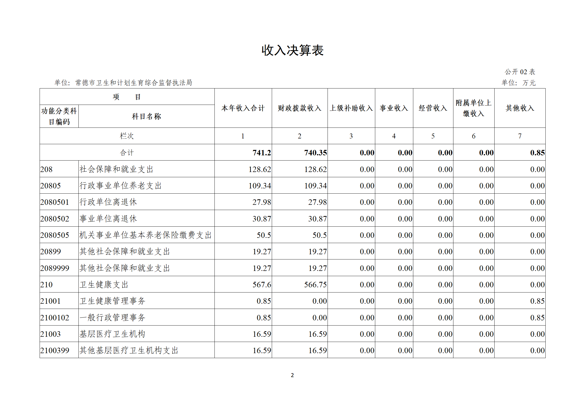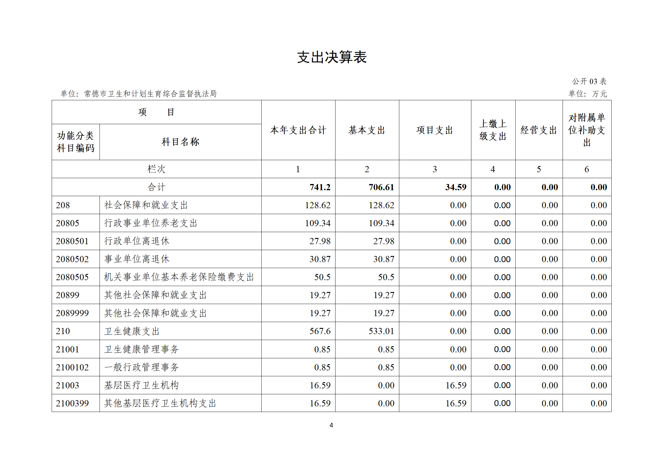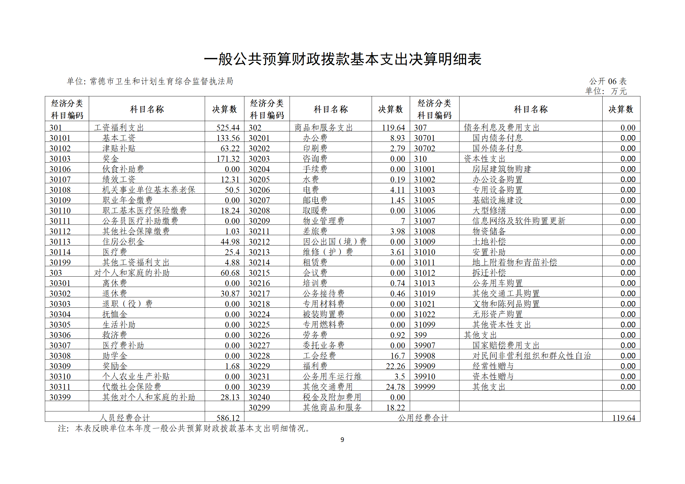 (二)决算单位构成。本单位无所属二、三级预算单位,故2024年单位决算编制范围的为常德市卫生计生执法局单位本级。