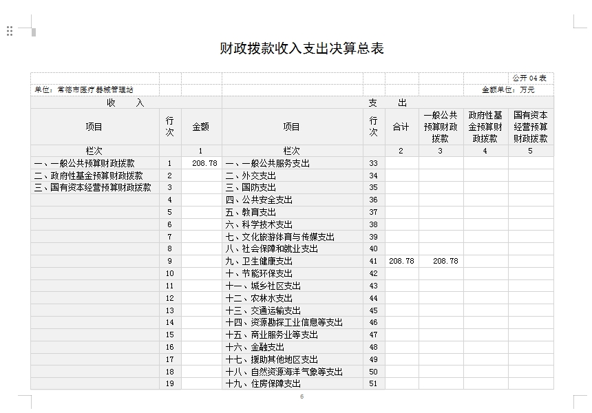 2024年度财政拨款收入总计208.78万元。与上年相比,减少12.61万元,减少5.70%,主要是因为财政拨款减少。财政拨款支出总计208.78万元。与上年相比,减少12.61万元,降低5.70%,主要是因为人员支出减少,财政拨款减少。