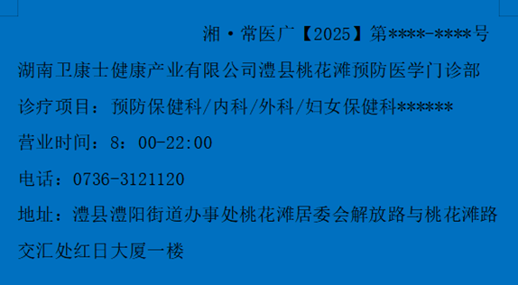湖南卫康士健康产业有限公司澧县桃花滩预防医学门诊部医疗广告审查证明
